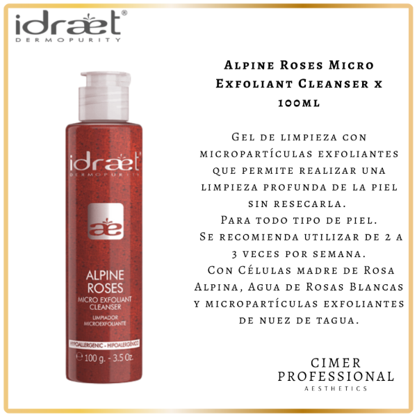 Gel de limpieza con micropartículas exfoliantes que permite realizar una limpieza profunda de la piel sin resecarla. Para todo tipo de piel. Se recomienda utilizar de 2 a 3 veces por semana. Con Células madre de Rosa Alpina, Agua de Rosas Blancas y micropartículas exfoliantes de nuez de tagua.