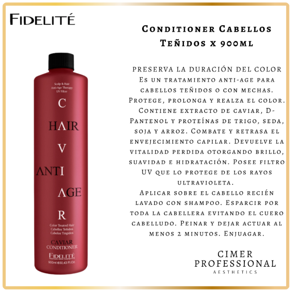 Es un tratamiento anti-age para cabellos teñidos o con mechas. Protege, prolonga y realza el color. Contiene extracto de caviar, D-Pantenol y proteínas de trigo, seda, soja y arroz. Combate y retrasa el envejecimiento capilar. Devuelve la vitalidad perdida otorgando brillo, suavidad e hidratación. Posee filtro UV que lo protege de los rayos ultravioleta.